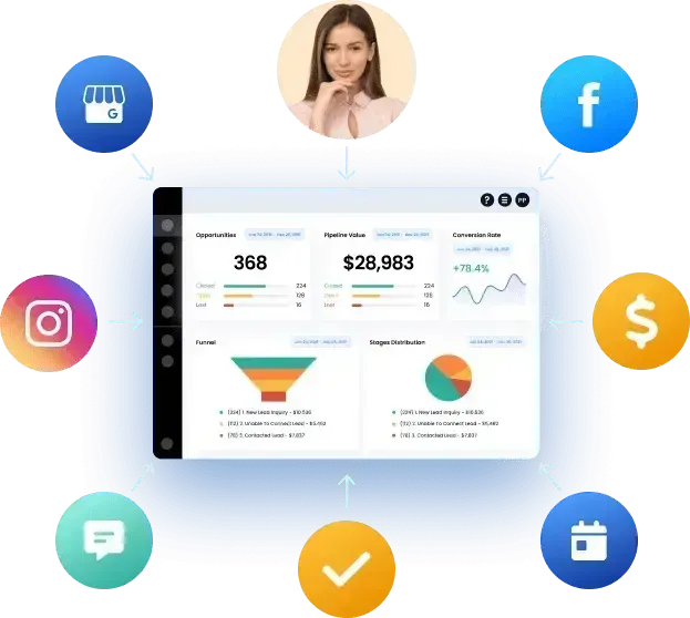 Manage messages from Facebook, Instagram, Google, SMS, and more in one app.